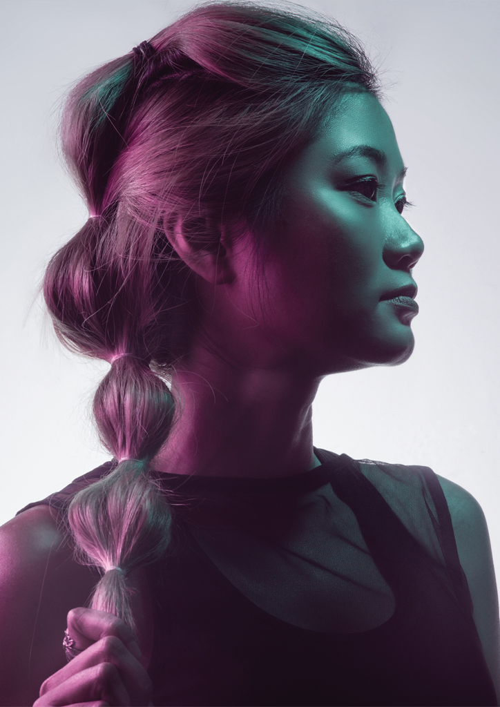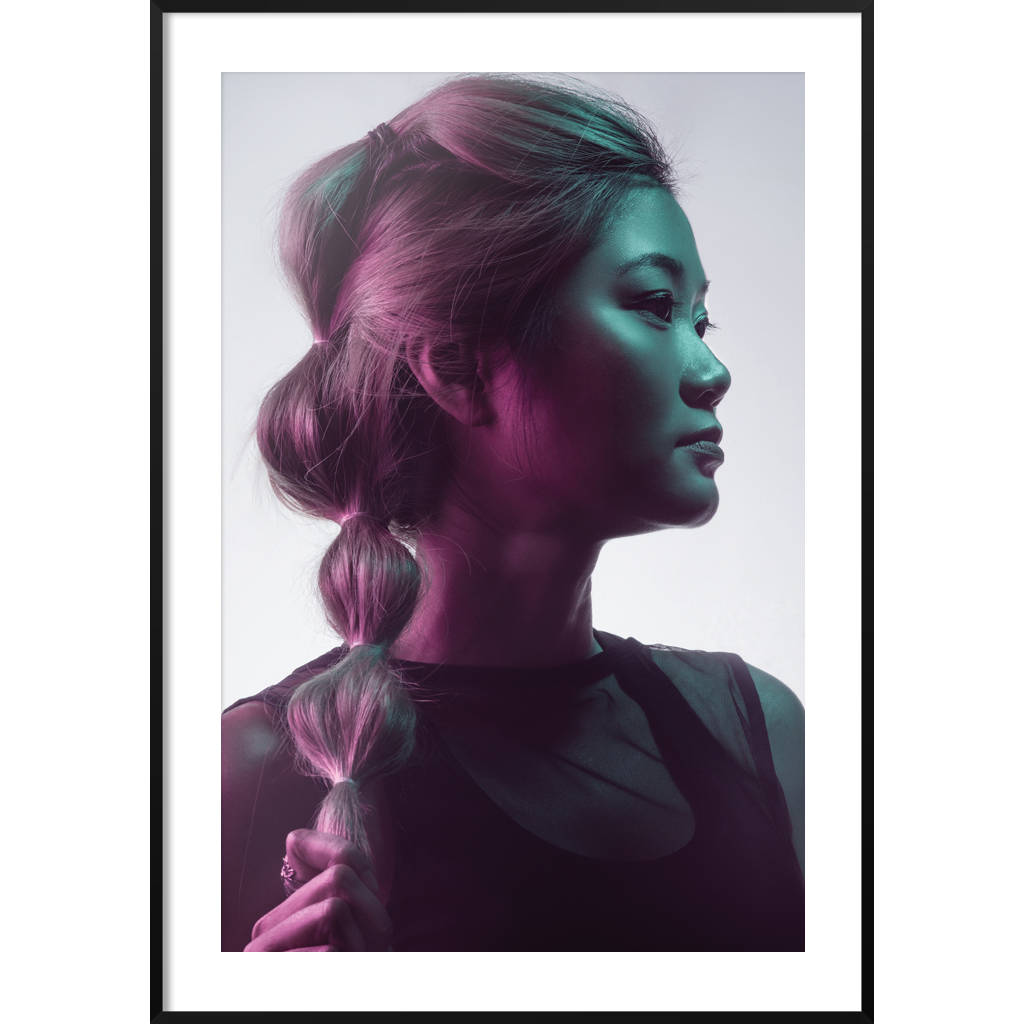 Intrygujący portret kobiety w świetle neonów – niezwykły plakat, który doda ciekawej atmosfery wnętrzu.