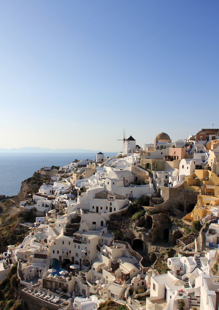 Grecja wyspa Santorini, która jest jednym z symboli tego kraju – biała zabudowa na skalistym wybrzeżu tworzy niepowtarzalny krajobraz.