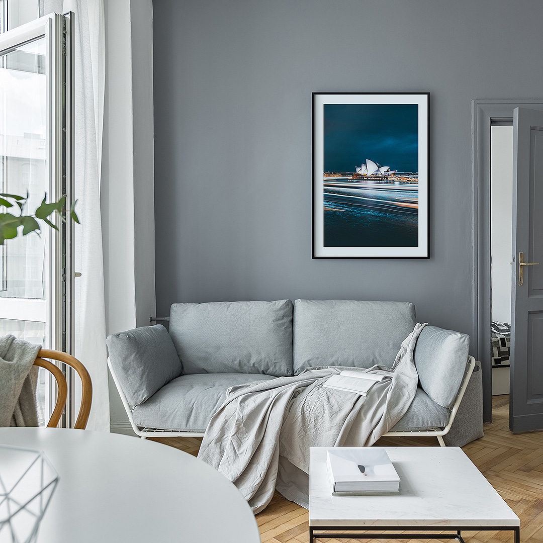 Sydney Opera House to jeden z najbardziej rozpoznawalnych budynków na świece. Został wybudowany w 1973 roku . Sam projekt budynku został wybrany spośród ponad 200 prac konkursowych, a na otwarcie opery przybyła sama królowa Elżbieta. Ten plakat idealnie pasuje do nowoczesnych przestrzeni.