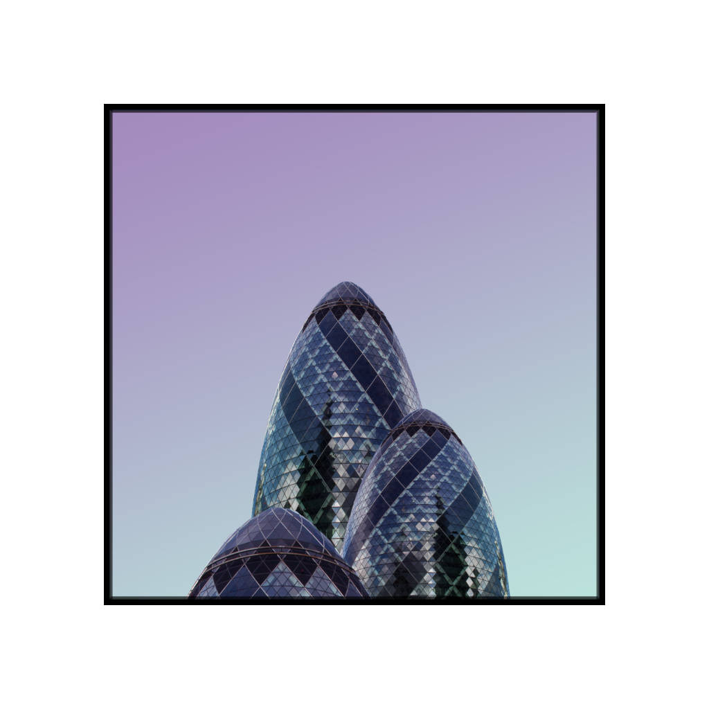 Plakat The Gherkin London z kolekcji THE TOP – to prostate kształty nowoczesnej architektury połączone z kolorami nieba.