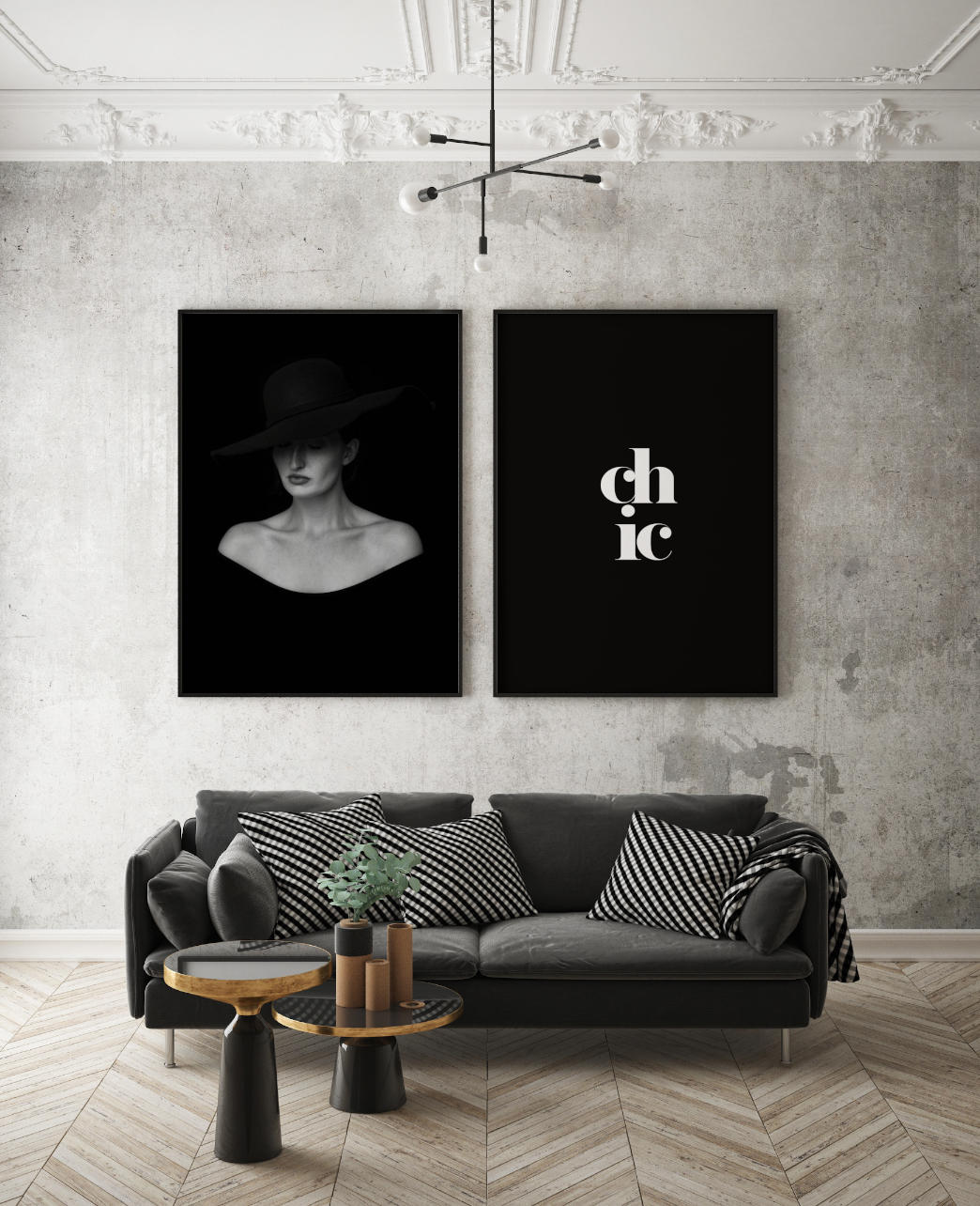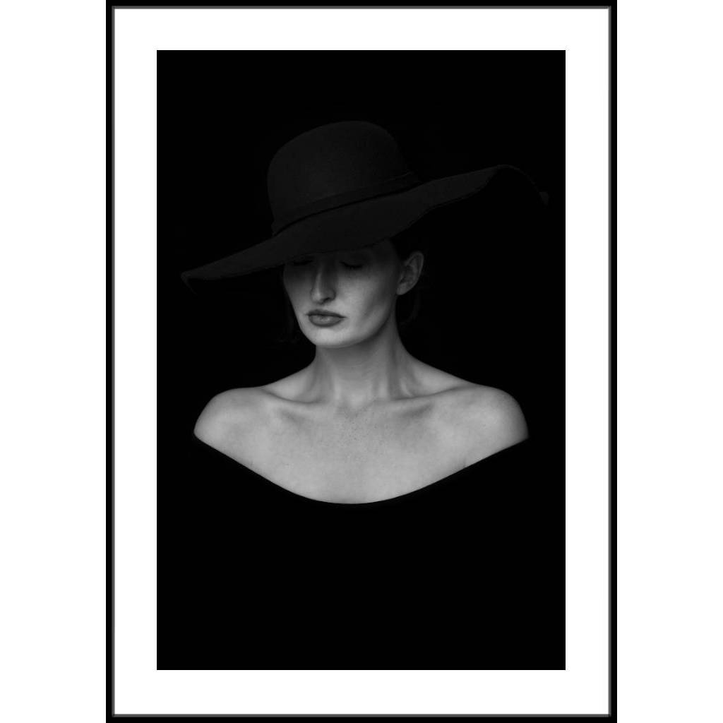 Plakat W cieniu kapelusza z kolekcji SHE, czyli niezwykłe i nietypowe portrety kobiet przedstawiające ich tajemniczość, zmysłowość i piękno. Jak zwykle monochromatyczna czarno – biała fotografia daje najlepsze efekty.